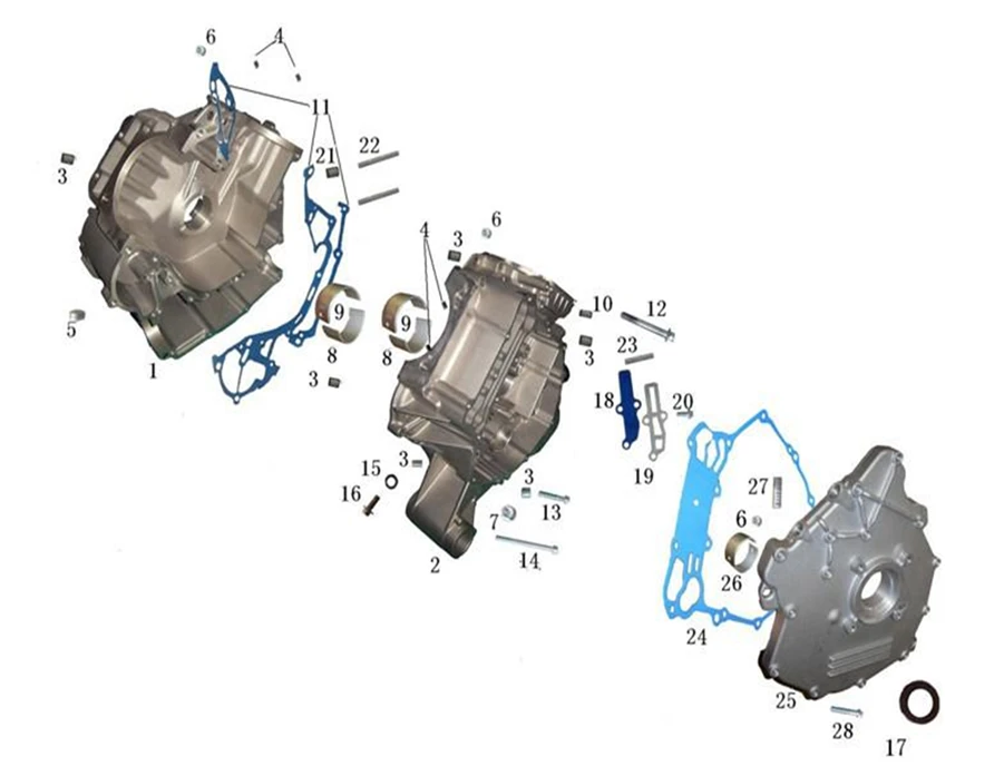 1 LU049843 Картер двигателя, правая половина 100201-001-0000